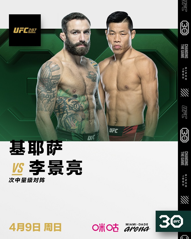 “吸血魔”李景亮(Li Jingliang)将于北京时间4月9日在迈阿密举行的UFC287中进行自己今年的第一场比赛,对手是前“终极斗士”优胜者迈克尔-基耶萨(Michael Chiesa)。同晚,新疆选手沙依兰-努尔丹别克(Shayilan Nuerdanbieke)也将出战美国人史蒂夫-加西亚(Steve Garcia)。