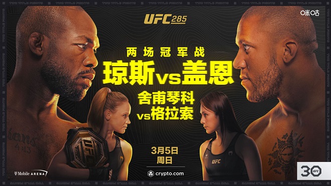 UFC 285:琼斯 VS 盖恩将于北京时间3月5日在拉斯维加斯举行。本次赛事一共包括了5场主赛和9场副赛总共14场比赛。咪咕将于5日06点30分开始全程直播整场赛事。