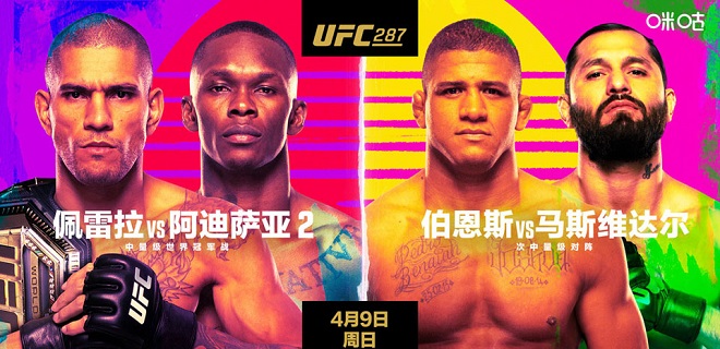 UFC 287:佩雷拉 VS 阿迪萨亚 2将于北京时间4月9日在佛罗里达州迈阿密举行。本次赛事一共包括了5场主赛与8场副赛总共13场比赛,咪咕将于4月9日06点开始全程直播整场赛事。