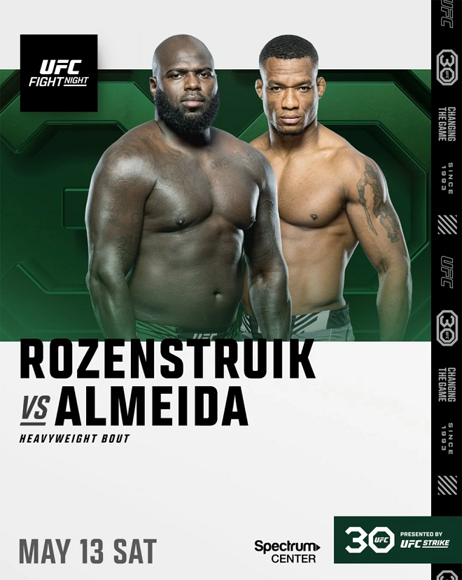 UFC格斗之夜:罗森斯楚克 VS 阿尔梅达将于北京时间5月14日在北卡罗来纳州夏洛特举行,届时咪咕将全程直播整场赛事。