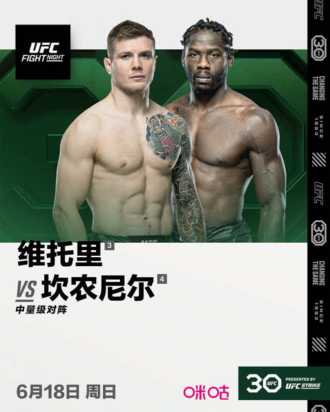 UFC格斗之夜:维托里 VS 坎农尼尔将于北京时间6月18日在佛罗里达州杰克逊维尔举行,咪咕届时将全程直播整场赛事。